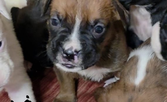 Rosalie is 💕ADOPTED💝 and is no longer available. SHE’S $2300.⁰⁰ DOB: 11/28/2025GO HOME DATE: 1/23/2026AKC Full Registration/PEDIGREE COLOR: Brindle Black Mask White Markings SEX: Female Rosalie is a stunning brindle Boxer puppy with a graceful presence and a heart full of love. Her beautiful markings perfectly match her sweet, affectionate […]