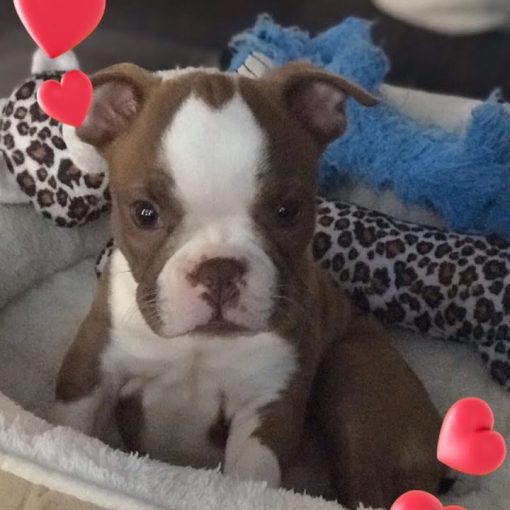 Cindy is an absolute doll-baby! She is one of the pups we raised and she has the perfect disposition. She, like her sire, loves to swim and when we have the baby pool out she’s quick to take it over. But her overall personality is like her dams, a quiet confidence. She weighs 18-22 lbs and is a Black Brindle & White!