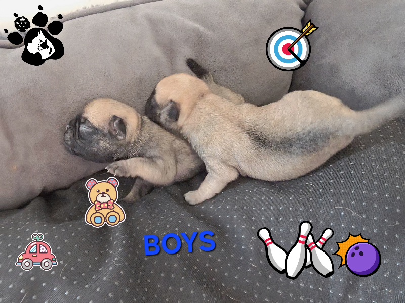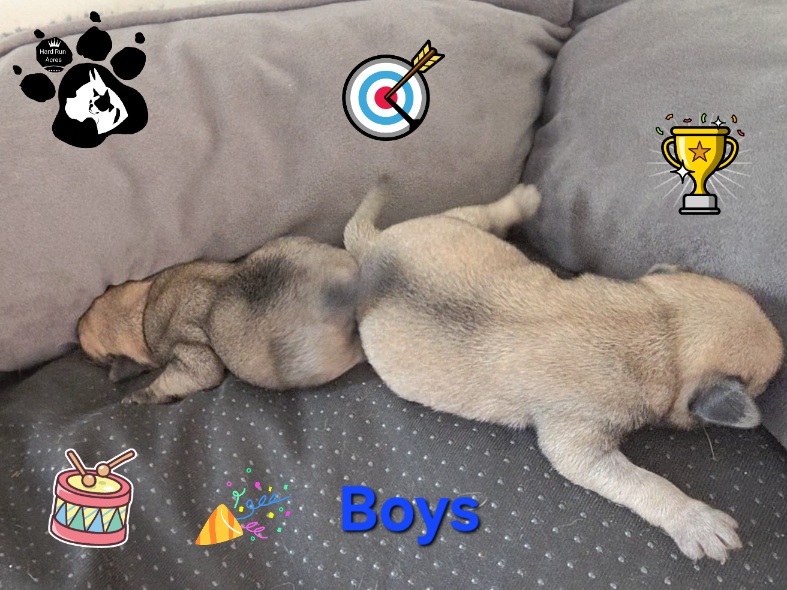 🎉CONGRATS to AMBER & FELIX on their new litter of PUG pups 🦴🐾! There are 2 boys💙 and 3 girls🩷 that will be available for deposits on 11/14/25. We’ll do our best to have the photo shoots done at that time or within that week as well👍.