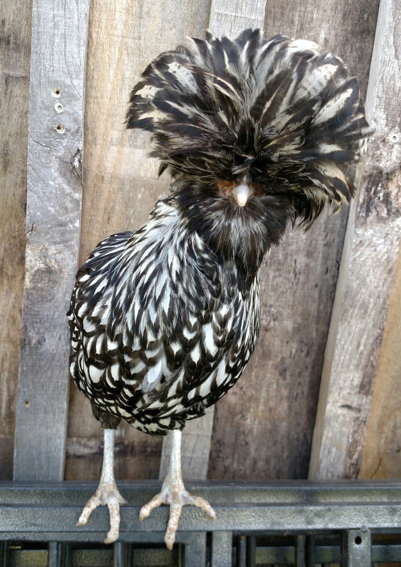Crested Polish chickens, often simply called Polish chickens, are known for their distinctive feathered crests. They are primarily ornamental birds, appreciated for their unique appearance and gentle temperament.
