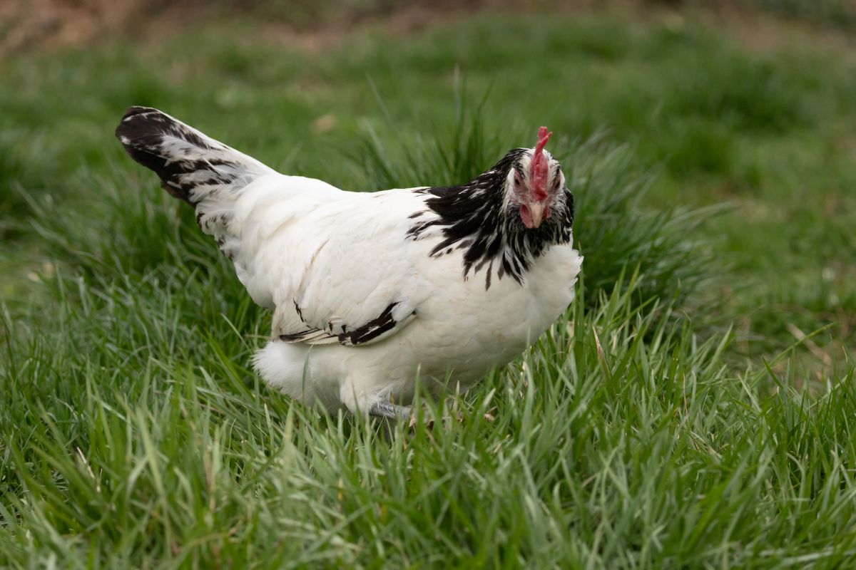 ORIGIN: Probably developed in both Germany and the Netherlands from related foundation stock. Both German and Dutch breeders have records that suggest the breed was developed in their respective countries. However, its early origins are unclear. Dutch and Belgian breeders believe that they’re descended from Jerusalem fowl, an ancient breed that arrived in Europe during the Roman era. While “Lakerveld” chickens were described in the Netherlands in 1727, German breeders claim they developed the breed in the 1800s from their local landrace and Silver Campines. They described their coloration as like a white sheet (Laken) on a black field (Feld).
